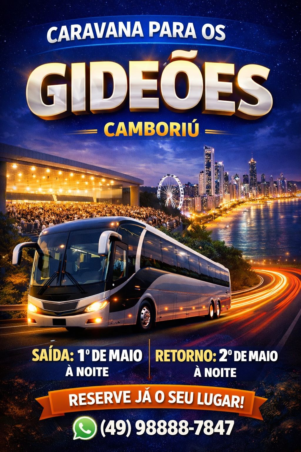 Caravana Capinzal SC com saída prevista de Capinzal na noite do dia 1 de maio e retorno com chegada em Capinzal prevista para a manhã do dia 3 de maio