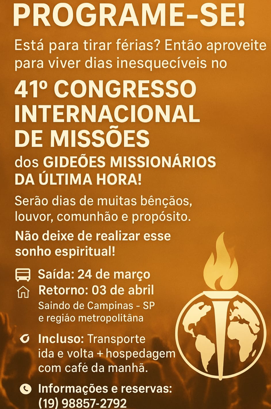 Está para tirar férias? Então aproveite para viver dias inesquecíveis no 41º Congresso Internacional de Missões dos Gideões Missionários da Última Hora!